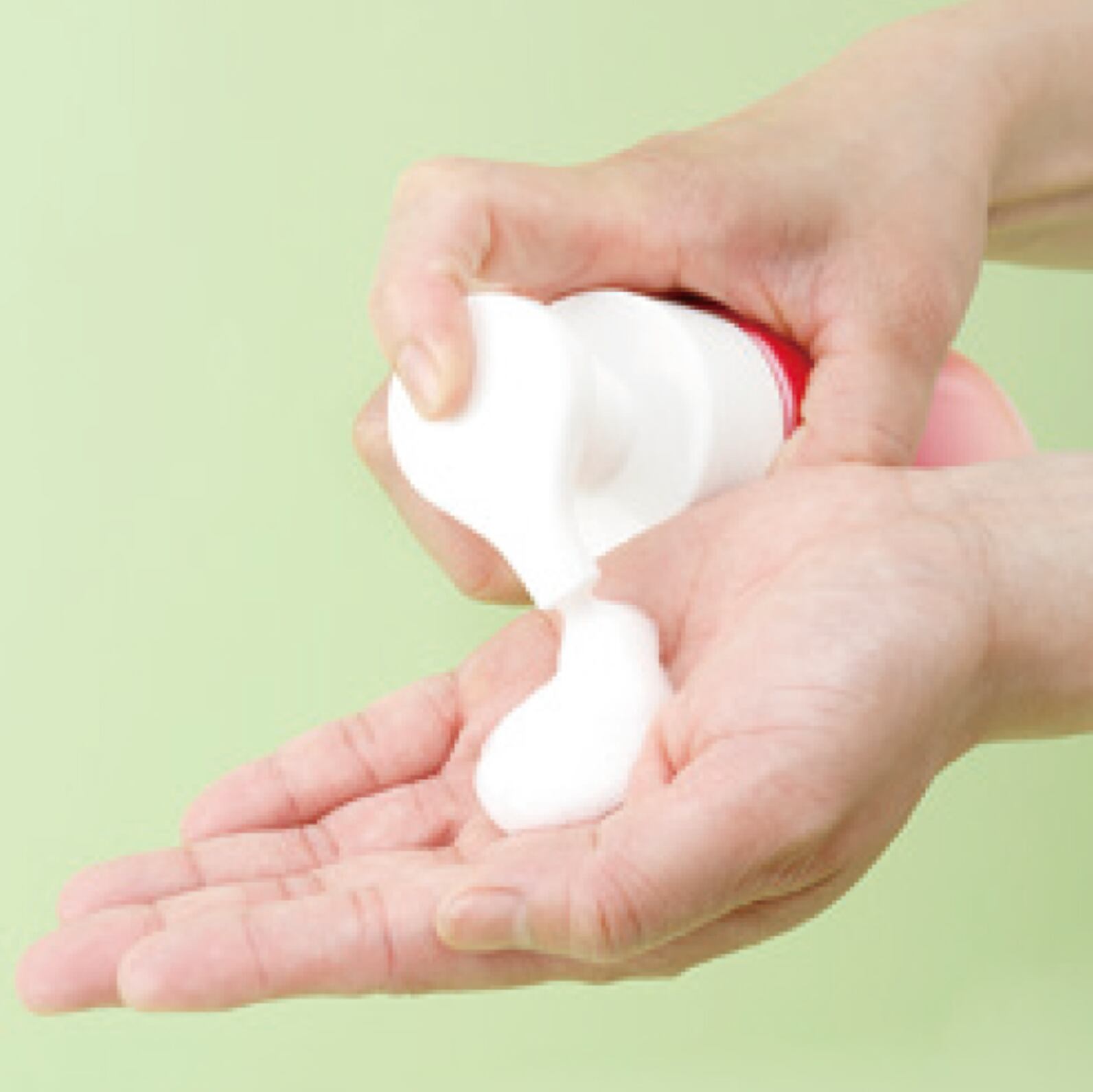 ・2~3プッシュ分の泡を手のひらに取り、股間を包み込むようにやさしくなじませます。