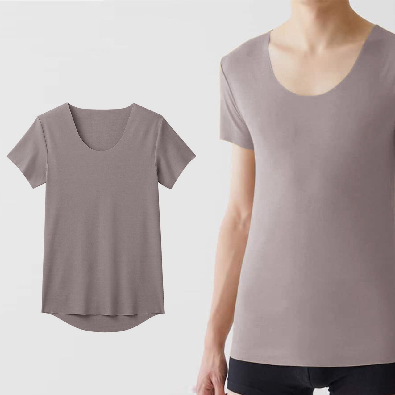 ドレスシャツやポロシャツの襟元からインナーが覗きにくいネックライン仕様と、